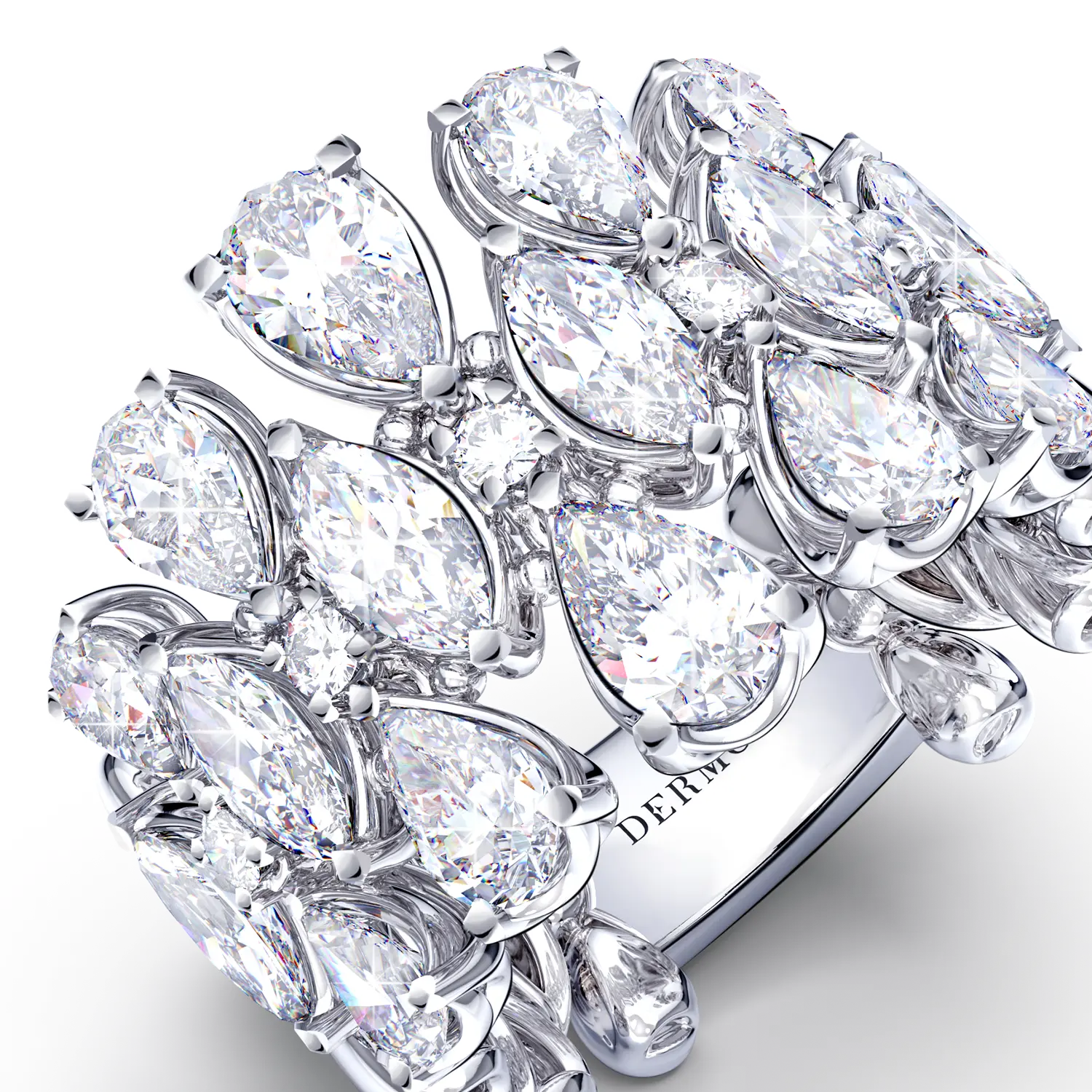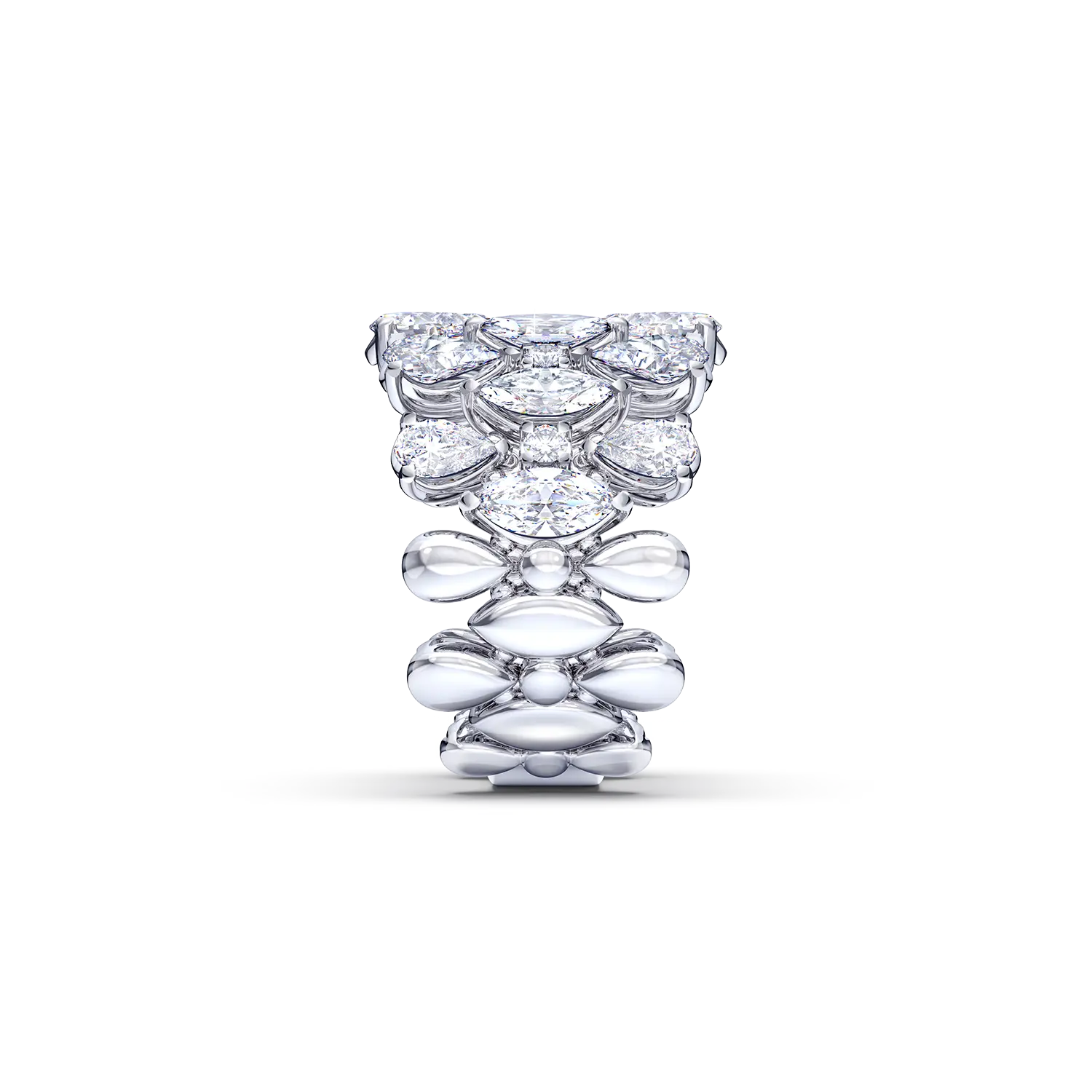 The Dancing Fancy ring is inspired by the elegance of dance, brought to life through a design that moves freely with delicate and intricate forms. The alternating arrangement of diamonds on the band creates a mesmerizing play of light, showcasing a new dimension of fancy diamonds. Every time you wear it, it tells a story of elegance and beauty.