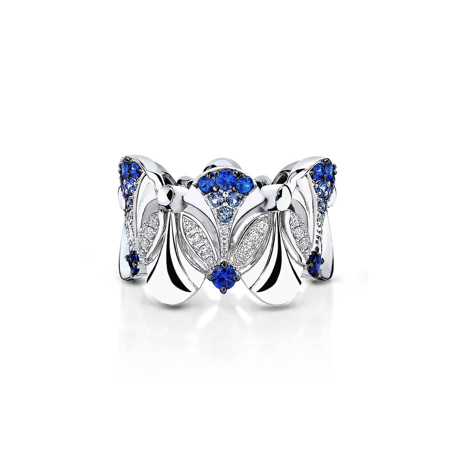 Alternate Ring with Diamond and Blue Sapphire Pavé