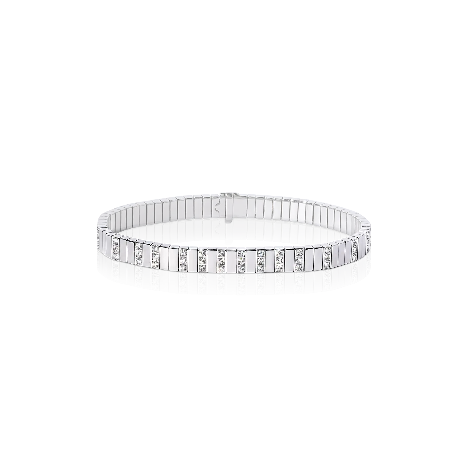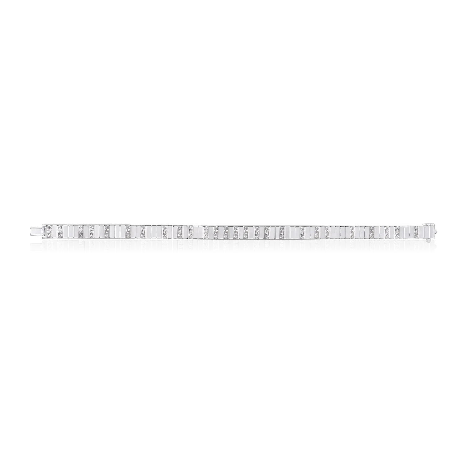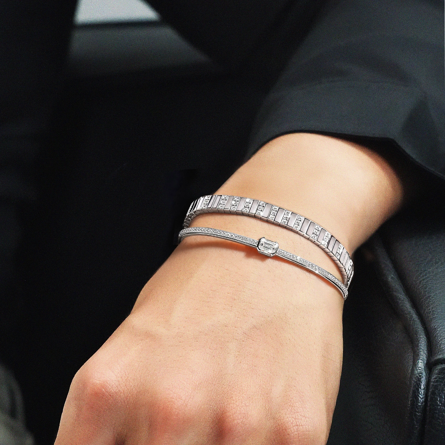A refined bracelet crafted from a rhythmic arrangement of round diamonds, alternating with high-polished gold elements, meticulously finished to create a continuous flow of light with every movement. Timeless in its elegance, yet powerful in its simplicity, this piece is made for those who believe that the smallest details make the greatest difference.