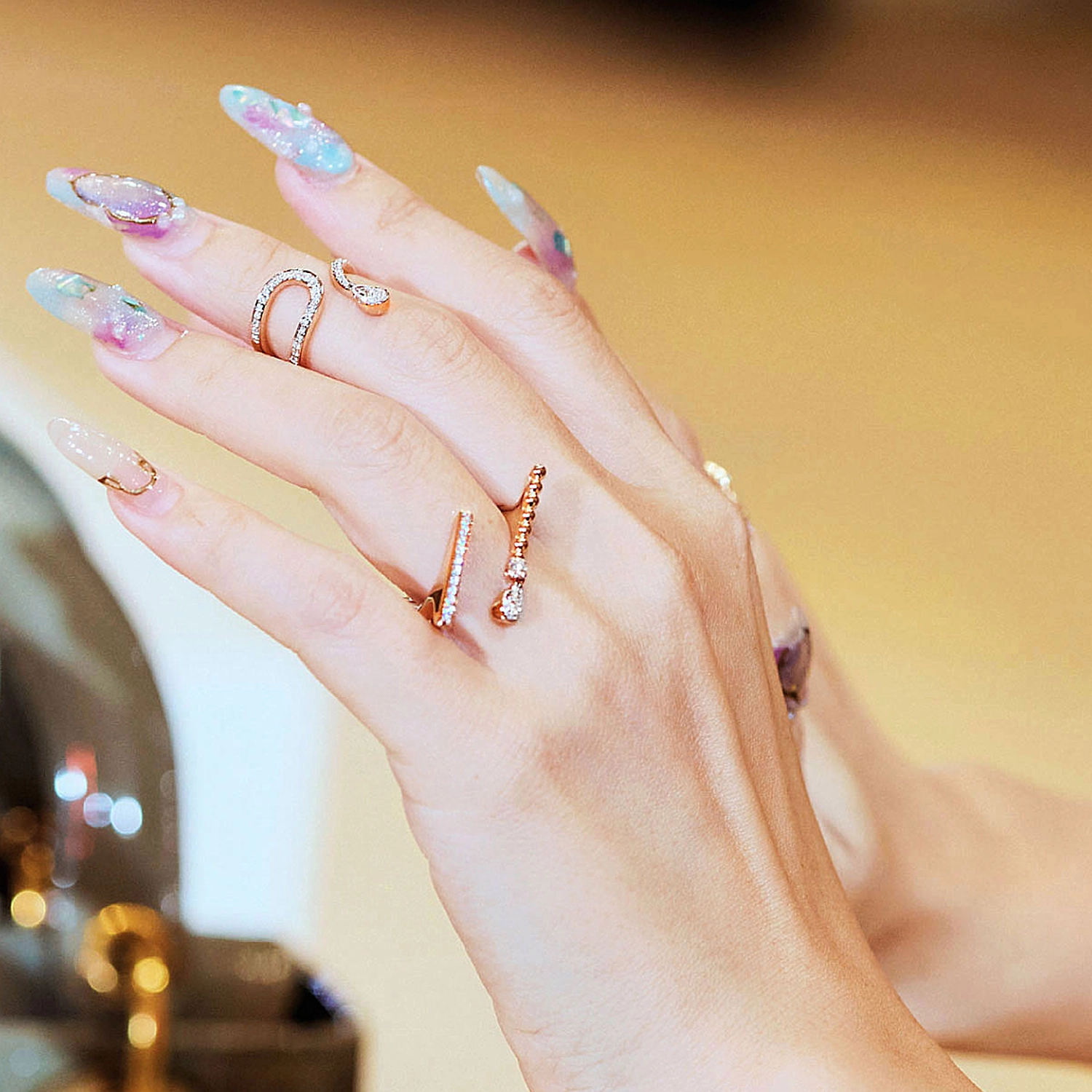 Uniquely chic, this collection features various shapes of fancy diamonds meticulously arranged to create stunning diamond lines. The designs are simple yet exude modernity in their own charming way.