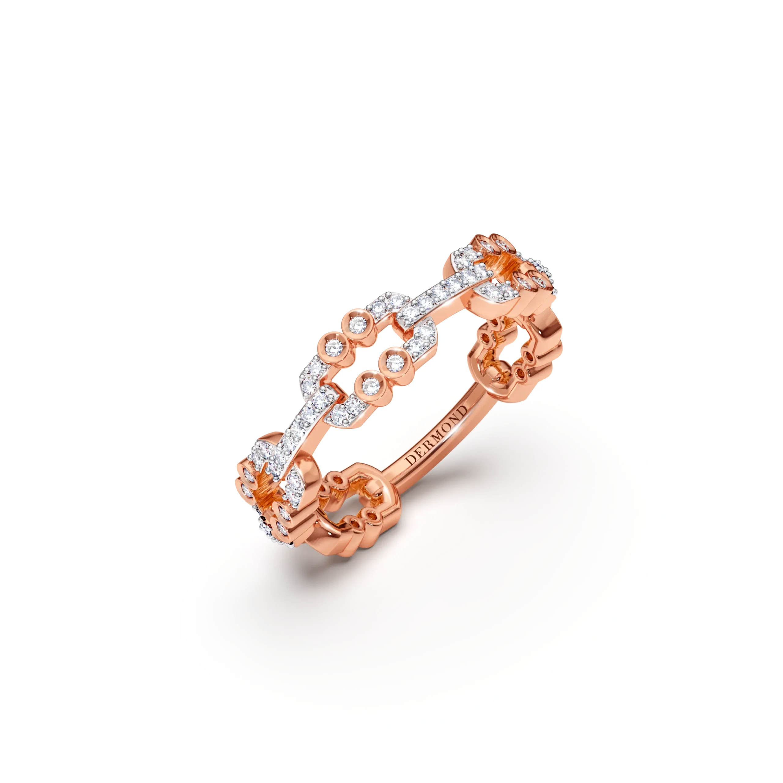 This ring is thoughtfully designed to embody the concept of the Deco Element collection, which seeks to make wearing diamond jewelry effortless and enjoyable. It features a minimalist design enriched with intricate details, such as precisely calculated spacing to achieve perfect proportions. With its well-balanced width, it exudes elegance and effortlessly captures attention.
