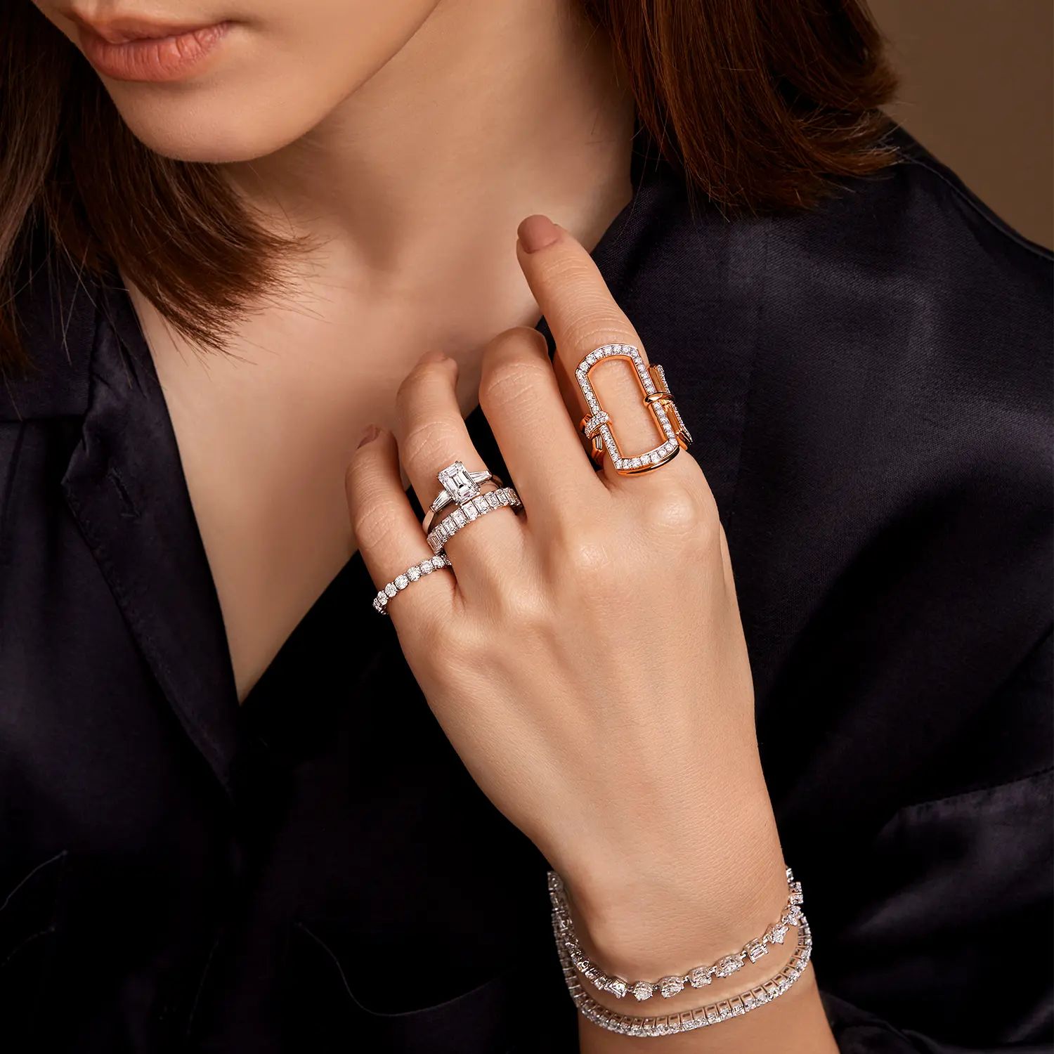 Make a statement with the Statement Ring, designed exclusively for the index finger. Its elongated silhouette enhances the finger’s elegance, creating a refined and confident look. Sparkling diamonds wrap seamlessly around the finger, beautifully complemented by a luxurious Rose Gold frame—exuding sophistication, allure, and timeless charm.