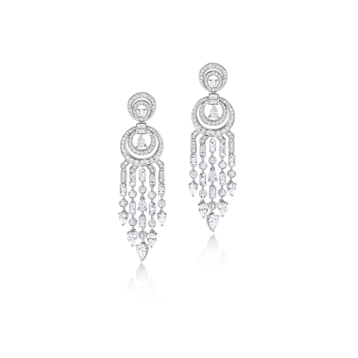 ต่างหูดีไซน์แชนเดอเรียที่สะท้อนเสน่ห์แห่งศิลปะ Art Deco ผ่านเส้นสายอันประณีตและองค์ประกอบที่กลมกลืนระหว่างความหรูหราและความทันสมัย ด้วยการออกแบบที่ได้รับแรงบันดาลใจจากเรขาคณิตอันเป็นเอกลักษณ์ ผสานเข้ากับรายละเอียดที่ละเอียดอ่อน จึงเกิดเป็นเครื่องประดับที่สะกดทุกสายตา