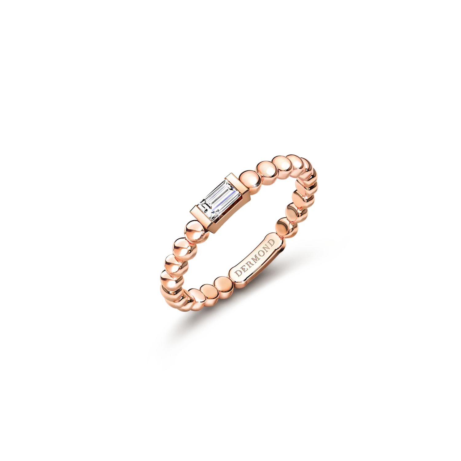 Baguette Cut with Gold Beads Pinky Ring